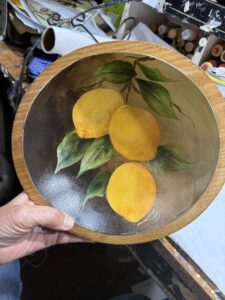 The first painting workshop of this new year will take place here at Gallery on market on March 15! We will be painting a 9 inch bowl with Lemons. The class is all inclusive in that it includes food, drinks(wine, beer, and nonalcoholic choices), all the supplies that you will need, and lots of fun! It doesn’t matter if you’ve never painted before because I walk with you through each step of the way. The class fee is $240 and it begins at 11 AM and is over at 5 PM or sooner if we finish sooner. Call Cindy at 717–3 71–9864 if you’d like to sign up. There are still a couple of spots left in the lemon class!